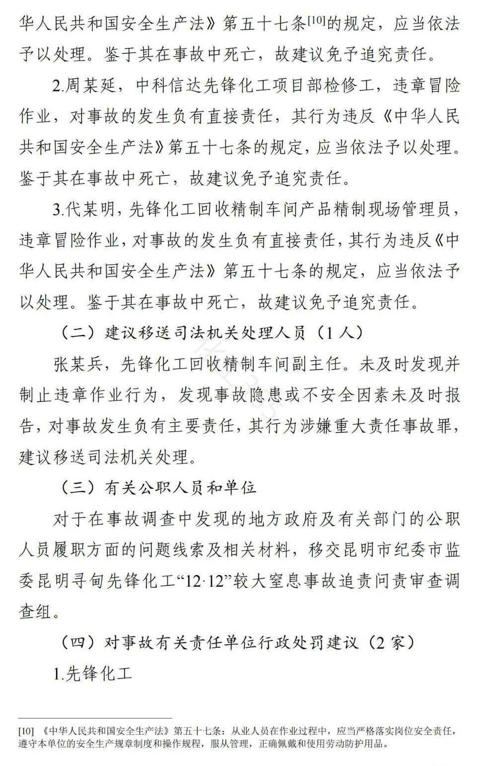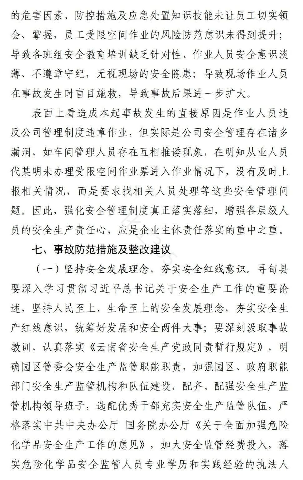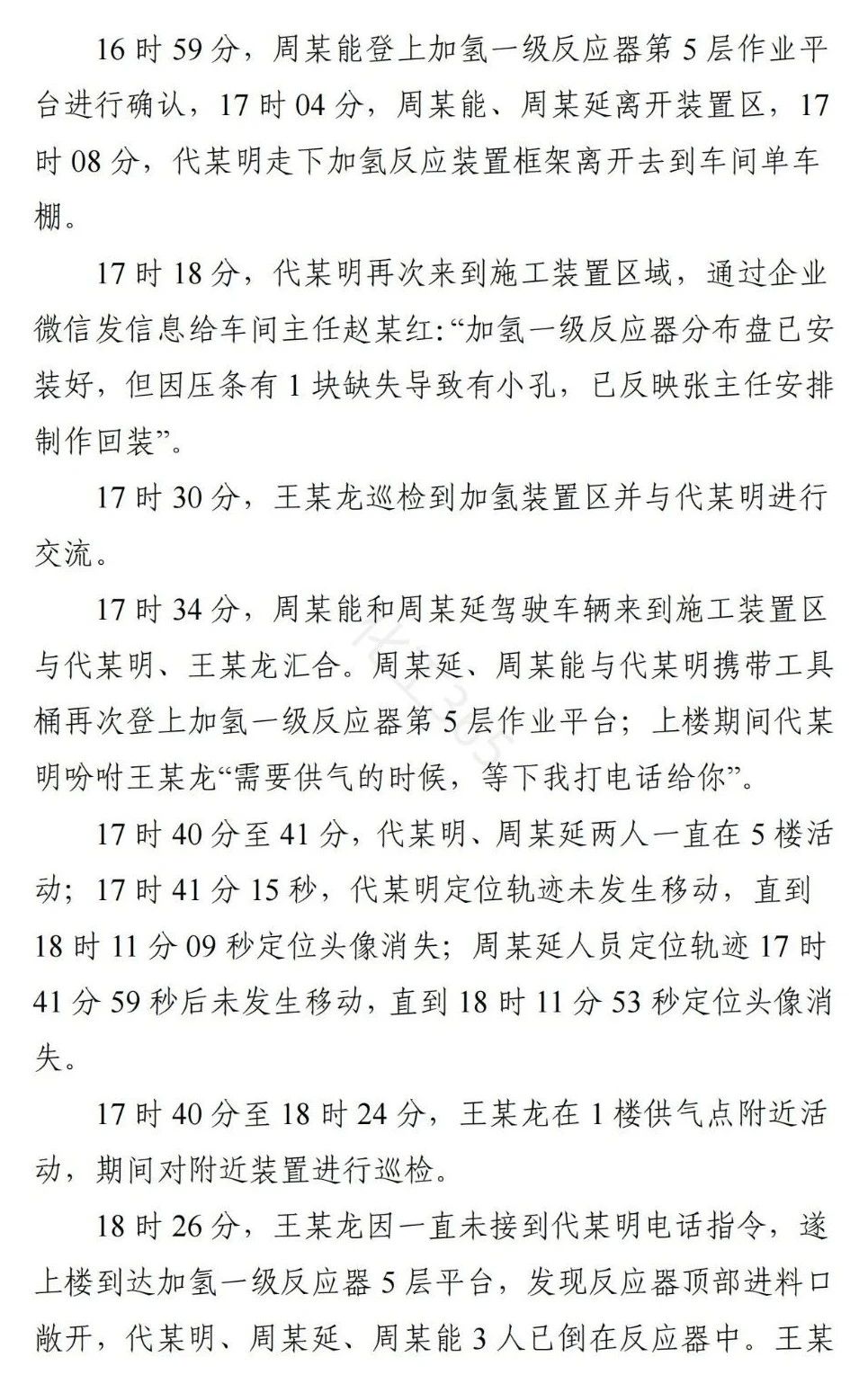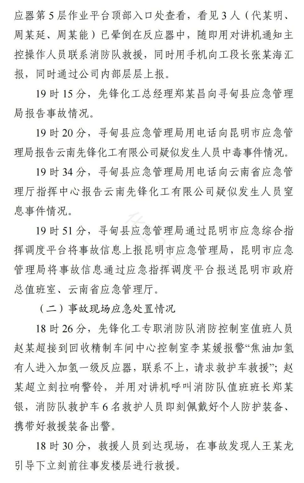 由于作业过程中为了防止催化剂受潮改变理化性质,催化剂更换过程中在加氢一级反应器进料口上部搭设了篷布防水,致使现有视频资料无法查看事故发生点相关经过,调查组通过现场勘验,调查询问、检验鉴定、事发地周边视频资料和人员定位轨迹综合分析认定:该起事故的直接原因为先锋化工加氢一级反应器催化剂更换作业期间,反应器处于连续通入氮气进行正压保护状态,在发现加氢一级反应器结构篮(分布器)回装存在缺陷的情况下,先锋化工车间现场安全管理人员违反《危险化学品企业特殊作业安全规范》(GB30871-2022)第 4.1 条[5]、第 4.3 条[6]、第 4.4 条[7]、第4.6 条[8]、第 6.6 条[9]、《云南先锋化工有限公司受限空间作业安全管理规定》第 6 项 第 6.1 条和《中科信达建工集团有限公司安全管理方案》第 11 项 第 10 条等规定,在未办理受限空间安全作业票、未开展作业危害分析、未穿戴相应的个体防护装备的情况下,车间现场管理人员违规组织中科信达作业人员对加氢一级反应器内结构篮(分布器)回装存在的缺陷进行修补作业,在准备作业过程中,1 人不慎吸入高浓度氮气,瞬间失去意识,从加氢一级反应器进料口(内径600mm)向反应器坠落,另外 2 人在未穿戴相应的个体防护装备情况下盲目施救,均因吸入高浓度氮气缺氧窒息晕倒在反应器内,导致事故扩大。