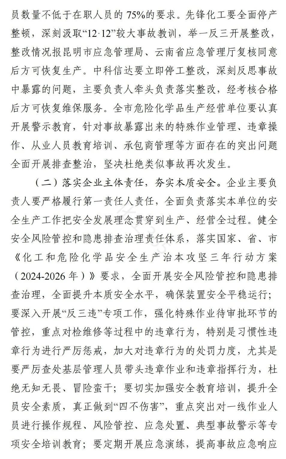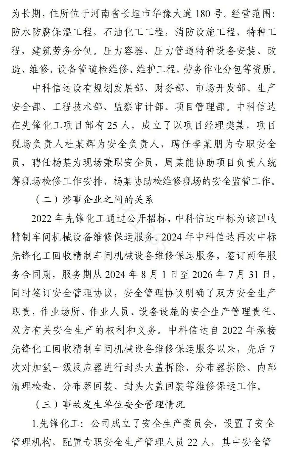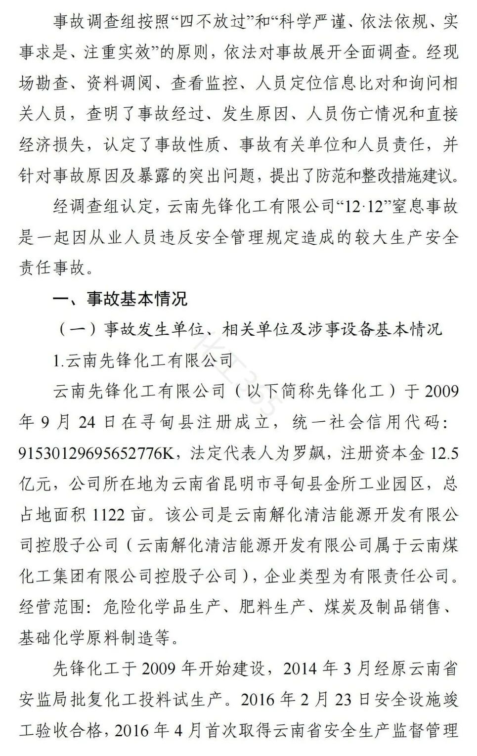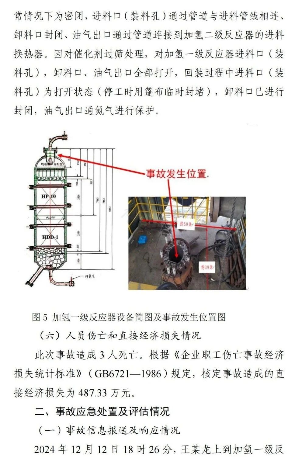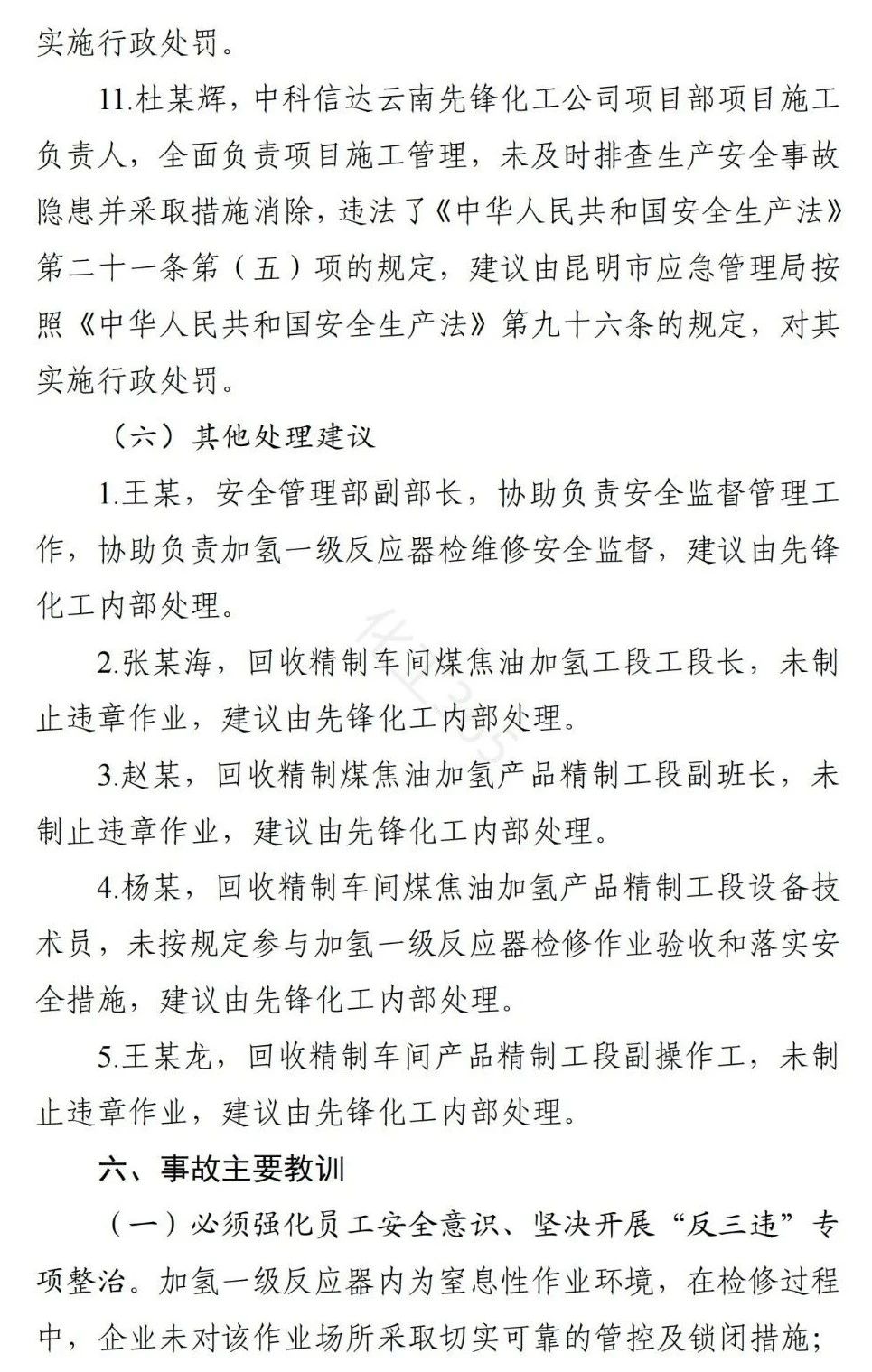 2024 年 12 月 12 日 17 时 41 分左右,云南先锋化工有限公司回收精制车间 12 万吨/年宽馏分煤焦油加氢装置一级反应器(以下简称加氢一级反应器)在检修期间,发生一起氮气窒息事故,造成 3 人死亡。