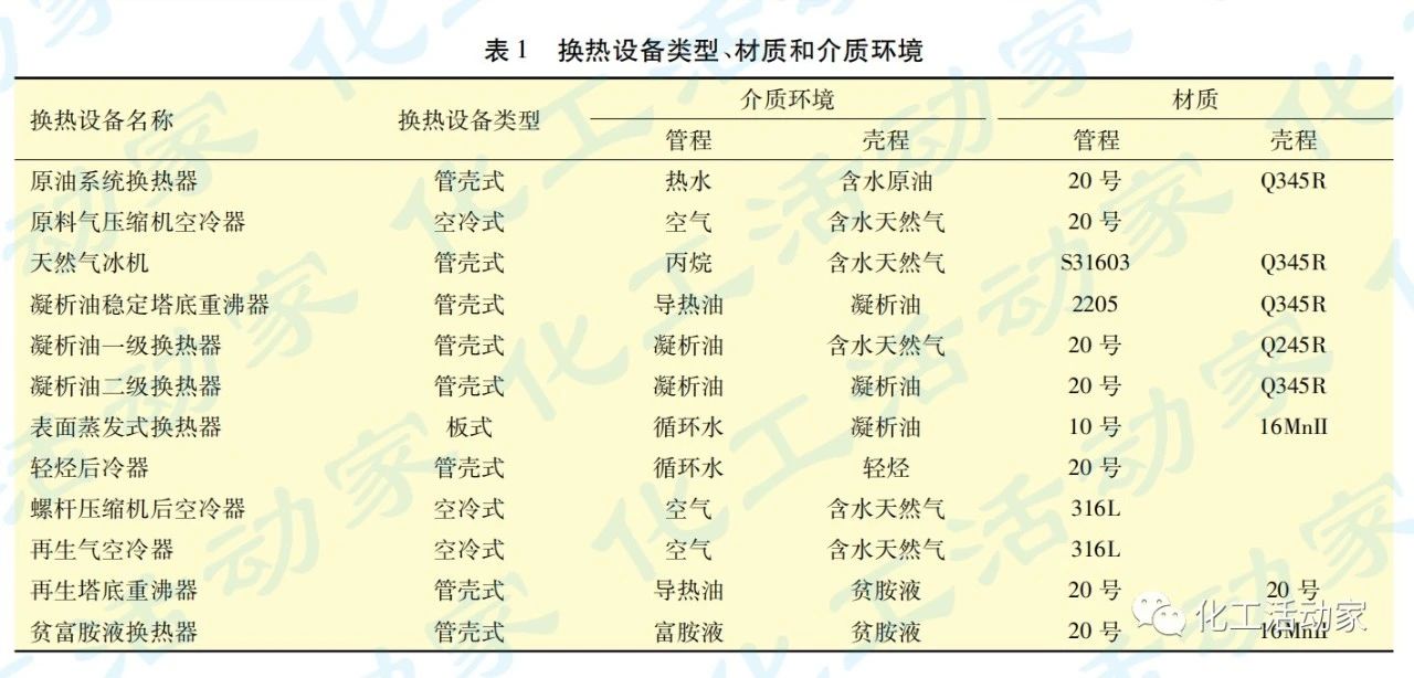 换热设备服役的工况及管束内外的腐蚀性介质由设备所处工艺单元决定,是换热设备腐蚀失效的主要影响因素。站内换热设备服役介质主要分为三类: